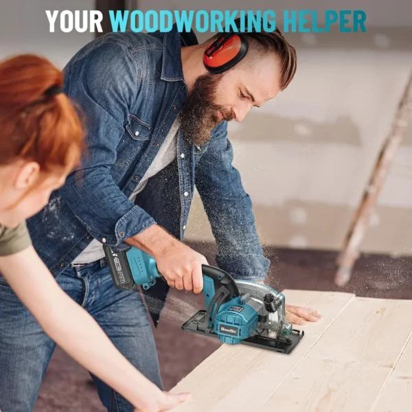 Comfortable, One-Handed Operation: The ergonomic, lightweight design of the cordless circular saw ensures you can cut in tight spaces or work overhead without straining your arm or wrist. Perfect for quick DIY projects or extended use